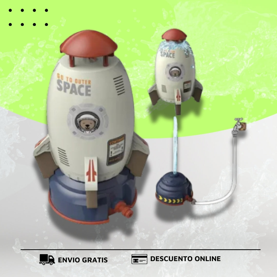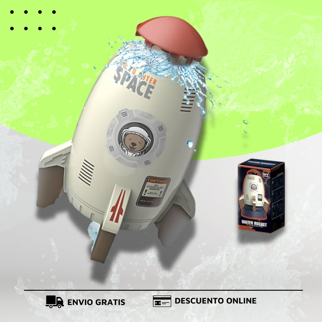 Diseñado con materiales seguros y resistentes, este cohete se conecta fácilmente al grifo y lanza chorros de agua a gran altura, ¡simulando un verdadero despegue espacial! 💦✨